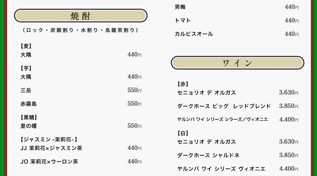 お品書き